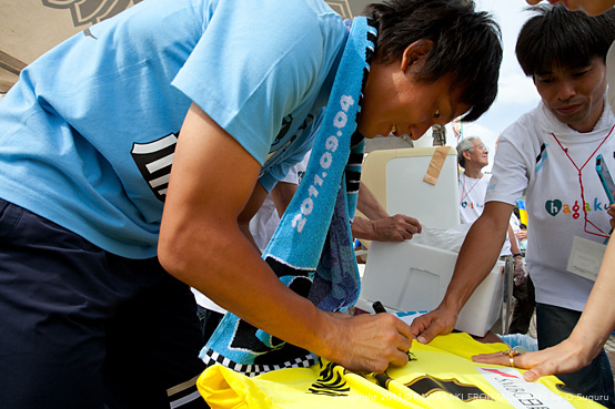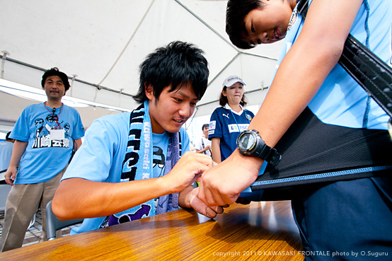 ここではユウスケこと田中裕介選手、コーセイこと柴崎晃誠選手、リョータこと大島僚太選手の3選手の「ファン感の日に実際に着用していたTシャツにサインを入れて」プレゼントします!