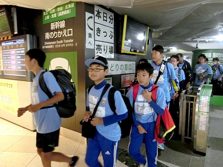 今年、修学旅行に参加したのは総勢40名。朝早くから陸前高田を出発し、お昼前に東京駅到着。まずはフロンターレオフィシャルグッズショップの「アズーロ・ネロ」へ。日頃、オンラインショップ以外では、フロンターレグッズを買うことができないため、直接商品を手に取り、「これがかっこいいな」「やっぱりこっちの方がいいかな」と悩みながら、ショッピングを楽しんでいました!!