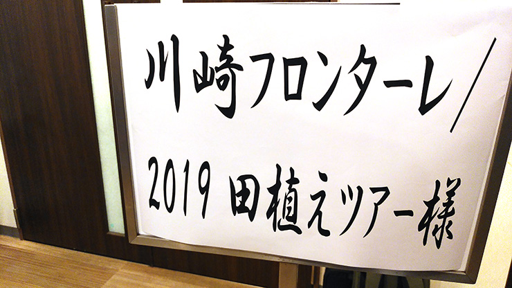 最初はおぼつかない手つきの様子だった参加者の皆さんも、植えては一歩前へを繰り返すうちに、余裕から笑顔が増えていきました。そして、どこからかチャントの大合唱! フロンターレのチャントを歌いながらの田植えは世界初(?)でしたね!