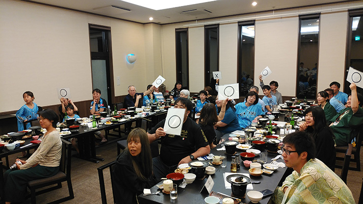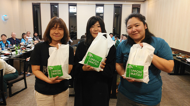 3つ目は「農業⚪×クイズ」! 3つ目のゲームを終え、合計得点の多い上位3チームを表彰。優勝賞品に「たかたのゆめ」などの豪華景品をご用意いただきました。約1時間半に及ぶ大白熱の農業ゲームでしたが、実は、実施した2倍近くのゲームを用意してくれていたとか(笑)!! 陸前高田市役所の皆さん、本当にありがとうございました!