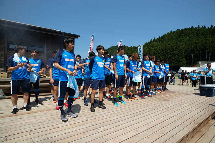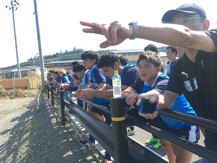 選手達は前日にアウェイ仙台戦後、仙台に宿泊し、当日の早朝に陸前高田市に移動しました。