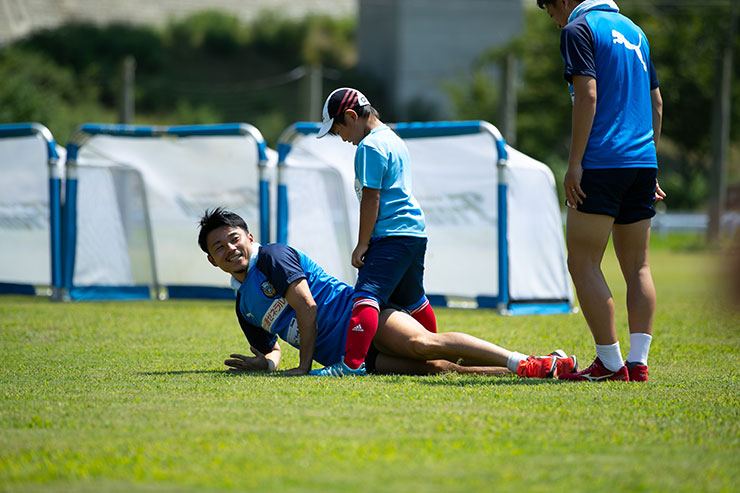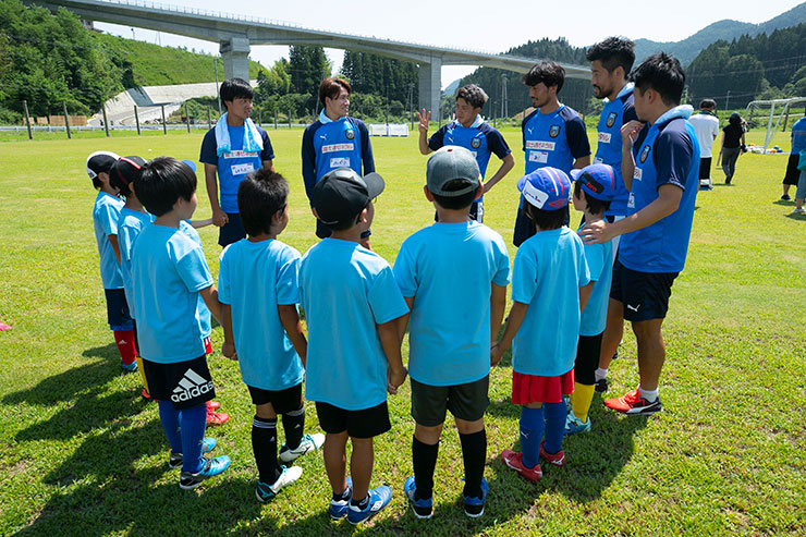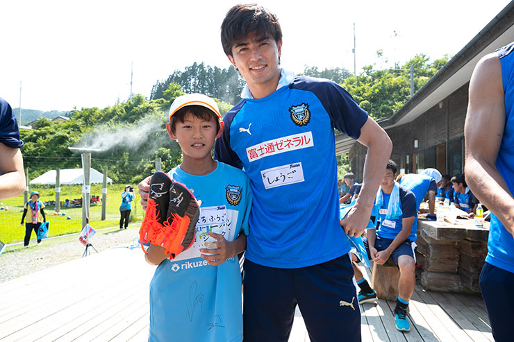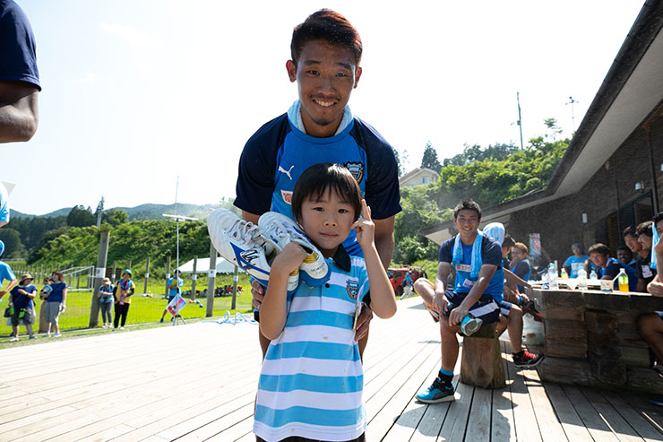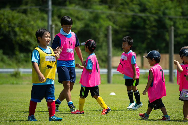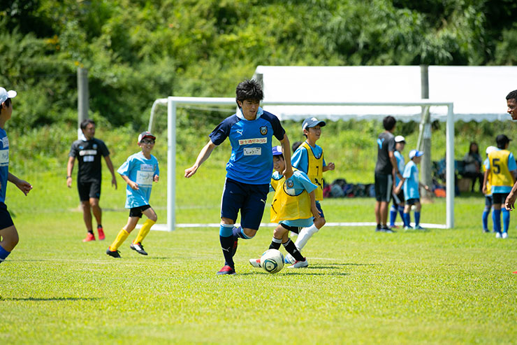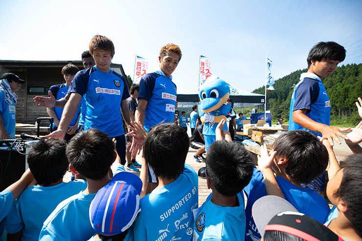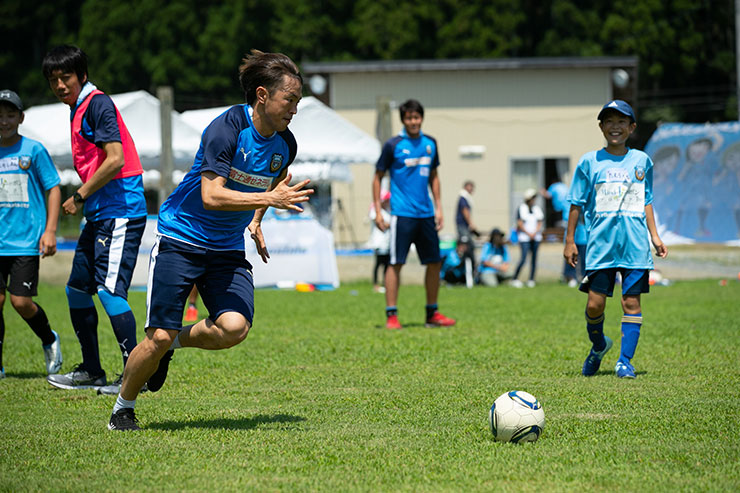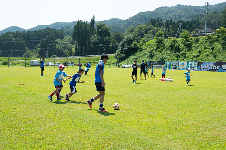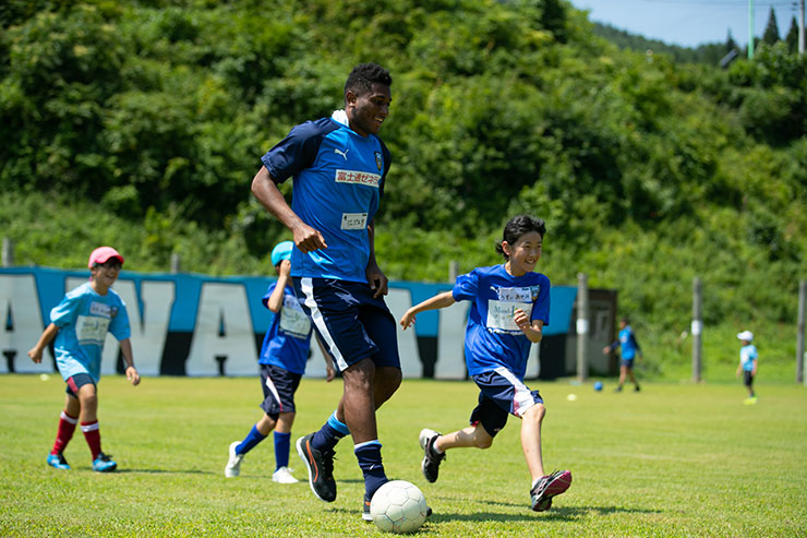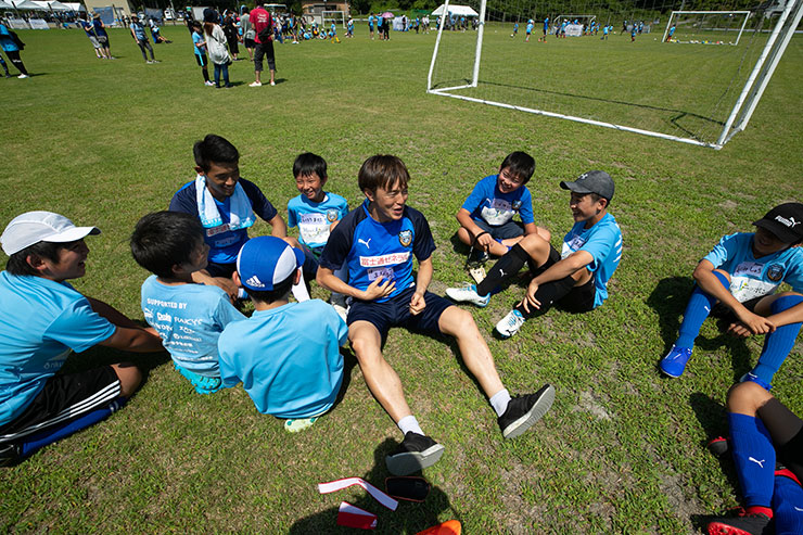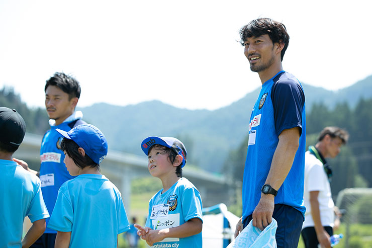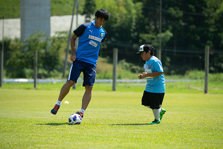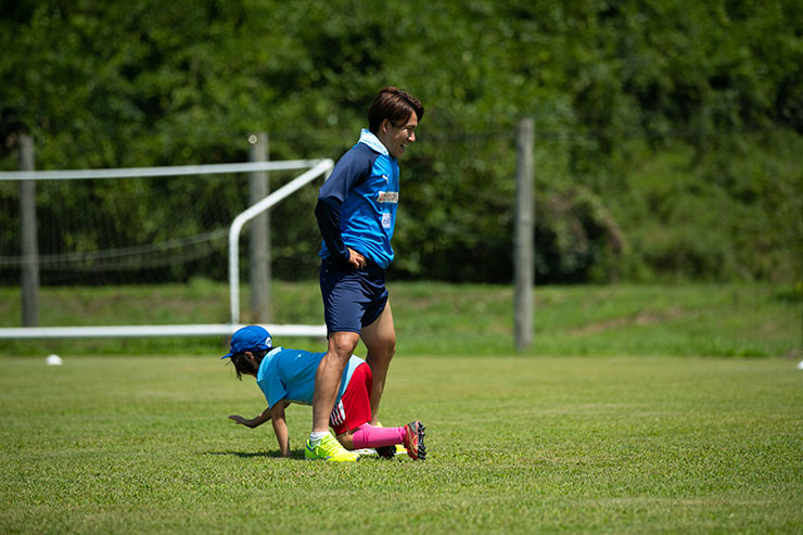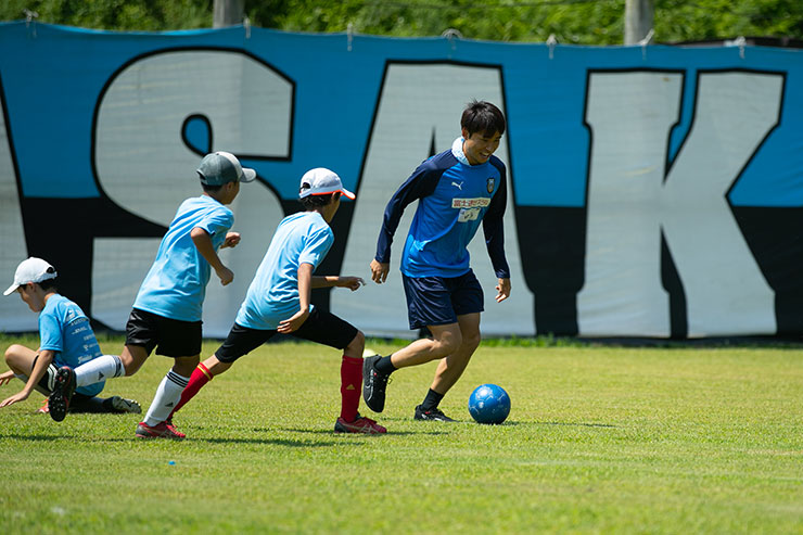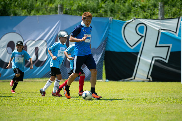 毎回思うのですが、子ども達よりも選手達も負けないくらい楽しそうにボールを蹴っているのを感じます。普段、試合だと真剣な表情が多くみられるので、そのギャップも大きく、広いグラウンドで楽しそうにボールを蹴っている姿は非常に印象的です。
