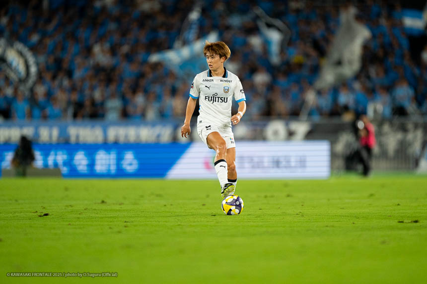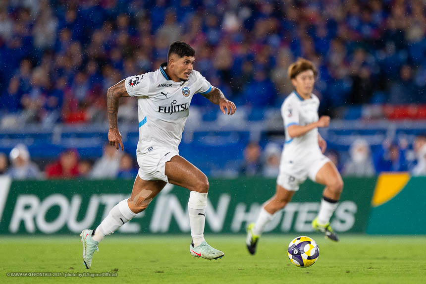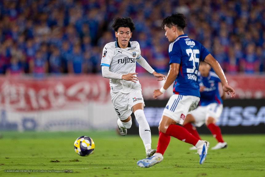フロンターレのスターティングメンバーはトップにエリソン、その下に脇坂、左ワイドにマルシーニョ、右に伊藤、ボランチは山本と橘田のコンビ、最終ラインは三浦-佐々木-ウレモヴィッチ-際、GK山口。立ち上がり4分、フロンターレの攻撃。横浜FMのビルドアップを際が中盤右でインターセプト。右サイド裏に出たボールに走り込んだ伊藤が切れ込み左足でシュートを決めて先制点を奪う。(1-0)5分、横浜FMの攻撃。自陣から右サイドにロングボールを入れられるが植中には佐々木が対応。7分、相手GKからのロングボールがこぼれペナルティエリア内に入るがウレモヴィッチが対応。9分、右サイドから崩しをかけられペナルティエリア内にボールが入るが守備陣が対応。10分、左サイドからのフリーキックの場面。クイックリスタートから左サイド裏のスペースを突かれるがクロスはそのままゴールラインを割る。11分、フロンターレの攻撃。中盤でボールをカット。脇坂が左サイドに展開しカウンターにつなげ、マルシーニョが突破をしかけるがブロックされる。13分、左コーナーキックの場面。脇坂のボールはクリアされる。クリアボールに反応した際がダイレクトで合わせるがミドルシュートは枠を外れる。15分、三浦が左サイド裏のスペースにボールを入れ、エリソンが収めて深い位置から折り返すが走り込んだ山本に合わず。16分、さらに攻勢をかけてマルシーニョが左サイドからシュートに持ち込むがブロックされる。17分、山本が中盤からスルーパスを入れ、抜け出した脇坂が右サイドから折り返し。マルシーニョがダイレクトで合わせるがGKの攻守に阻まれる。惜しい場面だった。19分、自陣でのインターセプトからカウンターにつなげ、右サイドの伊藤からボールを受けたエリソンが右足でシュートを放つがGKにキャッチされる。21分、横浜FMの攻撃。パスをつながれ左サイドから切れ込んだ井上にシュートを打たれるが守備陣がブロック。さらに攻勢をかけられるが守備陣が対応。23分、右サイドから崩しを狙われクルークスにクロスを入れられるが佐々木がクリア。