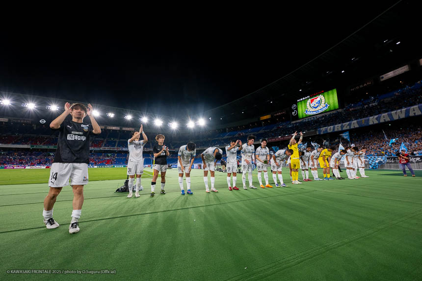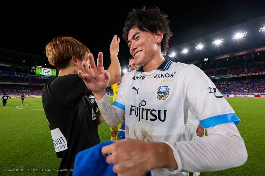 後半立ち上がりにお互いにチャンスを決めきれない流れのなか、エリソンと山本でカウンターをしかけてPKを獲得。エリソンがPKを決めたあとは、数的優位の状況でフロンターレがゲームをコントロール。アディショナルタイムに宮城がシュートを決めて勝負を決め、今シーズン初のリーグ戦3連勝を果たした。