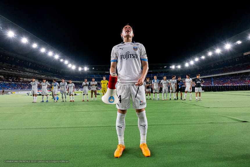 69分、フロンターレの攻撃。相手陣内でボールを動かし、セカンドボールを拾って圧力をかけるが横浜FMにしのがれる。70分、右コーナーキックの場面。三浦のボールはクリアされる。こぼれ球を拾って伊藤が左サイドから突破をしかけるがブロックされる。71分、左コーナーキックの場面。脇坂のボールはGKがパンチング。こぼれ球を拾って際が左サイドからクロスを入れるがGKにキャッチされる。72分、エリソンに代わりロマニッチ、マルシーニョに代わり宮城がピッチへ。76分、フロンターレの攻撃。ウレモヴィッチが右サイドに展開。際が粘って深い位置に入り込みシュート性のボールを入れるがGKにキャッチされる。77分、横浜FMの攻撃。パスをつながれ押し込まれるが守備陣が落ち着いて対応。78分、フロンターレの攻撃。中盤でボールを回し伊藤が右サイドからアーリークロスを入れるがGKにキャッチされる。80分、横浜FMの攻撃。中盤右サイドからのフリーキックの場面。天野のボールはそのままラインを割る。80分、山本に代わり河原、脇坂に代わり大関がピッチへ。81分、フロンターレの攻撃。ウレモヴィッチのロングボールをロマニッチが収めカウンターを狙うがオフサイドの判定。82分、中盤でボールを奪いカウンターにつなげ、大関が左サイドからシュートを放つがDFに当たりGKにキャッチされる。83分、横浜FMの攻撃。右サイドチェンジから天野に突破をしかけられるが三浦が対応。84分、リスタートの流れ。右サイドチェンジからゴール前にボールがこぼれ植中に左サイドからシュートを狙われるが枠を外れる。アディショナルタイム10分。90+4分、横浜FMの攻撃。セカンドボールを拾われ右サイドからクロスが入るがウレモヴィッチがクリア。さらにセカンドボールを拾われ圧力をかけられるが守備陣が対応。90+4分、伊藤に代わり田邉がピッチへ。90+5分、自陣からボールを運びゴール前に迫るがオフサイドの判定。90+7分、横浜FMの攻撃。ボールを奪い返され右サイドから加藤に突破をしかけられるが三浦が対応。迎えた90+8分、フロンターレの攻撃。ロングボールをロマニッチが収めて田邉が右サイドから中央に入り、ルーズボールに反応した宮城が左サイドから切れ込みシュートを決める。(3-0)90+10分、フロンターレの攻撃。中盤でボールを奪いロマニッチを起点にカウンターにつなげ宮城がミドルシュート。GKがはじいたボールを田邉がヘッドで合わせるがゴール上に外れる。惜しい場面だった。試合は3-0でタイムアップ。