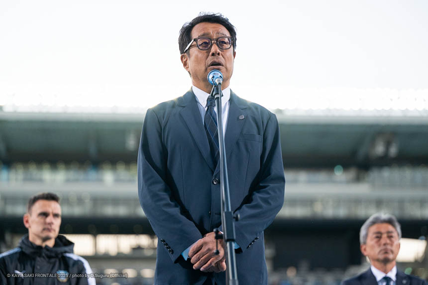 今日ここ川崎で見せたチームのパフォーマンスに関して非常に満足しています。最初から最後までいい試合ができました。ここ4年間で目指してきたものがすべていい形で出た試合だと思います。前からプレスに行ってボールを奪う。ボールを動かす。ボールを奪ったらできるだけ早く相手のボックス内に入る。そういったことがすべてできたと思ってます。それから今日、ここに来てくれたサポーターには本当に感謝しています。今までのアウェイでもたくさんのファンが来てくれて、いつもホームのようにサポートしてくれていました。今まで4年間アウェイの地で受けてきたこの雰囲気というか、スタジアムの雰囲気に関しても非常に感謝しています。アウェイでありながらしっかりリスペクトを持った応援がありました。自分たちのいいプレーには喜んでもらえたと感じていますし、そういったフェアな雰囲気はすばらしいものがありました。すごく感謝しています。