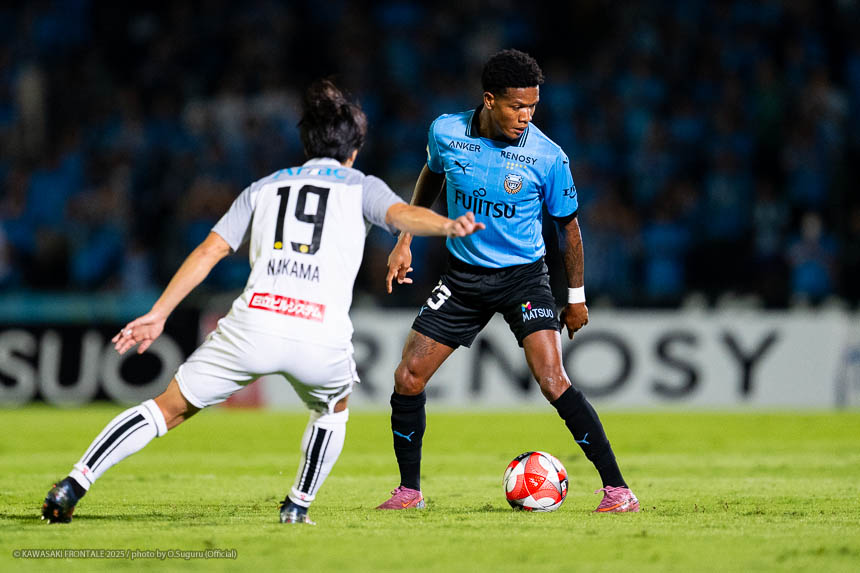 48分、柏の攻撃。パスをつながれ押し込まれるが守備陣がクリア。48分、左サイドに展開され折り返されるがGKソンリョンがキャッチ。50分、フロンターレの攻撃。相手陣内でマルシーニョがボールを奪いエリソンが左サイドに回り込むがシュートに持ち込めず。50分、柏の攻撃。直後にカウンターを狙われるが際が戻り対応。51分、リスタートの流れ。左サイドからのクロスを垣田にヘッドで合わせられるがGKソンリョンがキャッチ。51分、さらに速攻から中央突破を狙われるが守備陣がしのぐ。53分、左サイドに展開され折り返しを受けた小泉にシュートに持ち込まれるが守備陣が体に当ててブロック。54分、左コーナーキック。ショートコーナーから遠めから犬飼にシュートを打たれコースが変わるがGKソンリョンがセーブ。こぼれ球を拾われ左サイドから折り返しが入るが守備陣が体を張ってしのぐ。56分、パスをつながれ押し込まれるがチームディフェンスでしのぐ。58分、相手陣内で脇坂がボールをカット。山本がスルーパスを狙うがエリソンに合わず。60分、右サイドに振られ深い位置からクロスが入るが守備陣が対応。さらにセカンドボールを拾われ圧力をかけられる。61分、連続してミドルシュートに持ち込まれるが守備陣がブロック。61分、フロンターレのメンバーチェンジ。エリソンに代わってロマニッチがピッチへ。62分、柏の攻撃。山田にドリブルでエリアに入り込まれ右サイドから折り返し。GKソンリョンが触るがこぼれ球を拾われ左サイドからのクロスを小泉にヘッドで合わせられる(2-1)。64分、さらに攻勢をかけられエリア内にボールが入るが守備陣がしのぐ。65分、パスをつながれ押し込まれるがチームディフェンスで耐える。65分、さらに左サイドから速いボールを入れられ逆サイドから山之内にゴール前に走り込まれるが田邉が戻りながら対応。ピンチをしのぐ。68分、右サイドに振られ崩しをかけられるが守備陣がしのぐ。セカンドボールを拾われるが全員で耐える。