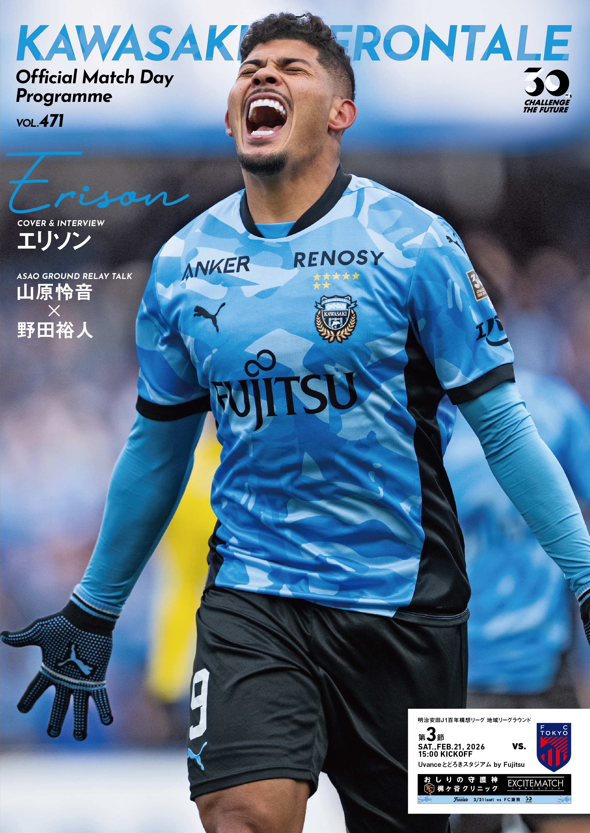 表紙&インタビューにエリソン選手、麻生グラウンドリレートークは山原怜音選手×野田裕人選手(前編)、大関友翔選手による「AFC U23アジアカップ優勝記念インタビュー」や新企画の「小林悠のYOUの人生、聞かせてください」をお送りします。
