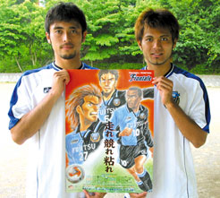 <<劇画調になってご満悦の箕輪選手・我那覇選手