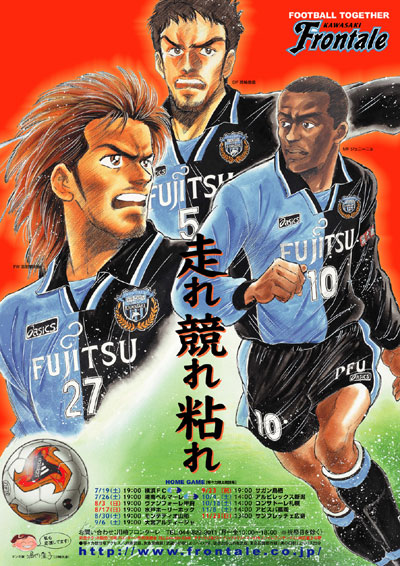 ●塀内夏子先生のコメント 小学生の頃、等々力競技場で連合運動会なるものをしたことがあります。あれからウン十年、今はりっぱな芝がしかれ、なんとプロサッカーチームがあるなんて。夢みたいですね。「あとはどんどん勝って2位になって下さい」と言ったら「優勝めざしてますー」と言われちゃいました(笑)。そりゃそうだ。たくさんのゴールと勝利をくださいね。がんばって! |