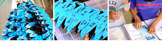 願いが成就するようにと、折り紙で「鶴」を1,000羽折る「千羽鶴」からヒントを得て、フロンターレのシンボルである「いるか」の折り紙をJ1昇格への願いを込めて1,000羽折ろうと、サポーターの有志の皆さんが競技場などで呼びかけ、制作したものです。