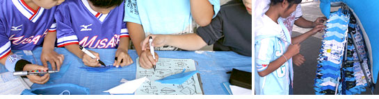 また、この折り紙には「昇格」への思いだけでなく、「千頭=先頭」⇒「トップ」⇒「優勝してJ1昇格」という願いも込められています。昨年暮れからこの活動を開始し、当初は1,000頭集めることを目標としていましたが、競技場内に設置されたブースには子供から大人まで多くのフロンターレサポーターが参加し、現在は目標の1,000頭を超え、約4,000頭もの「折り紙いるか」が完成しています。