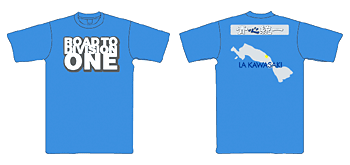 表は「Road to Division One」のロゴ、裏面は「青心統一」と川崎市のマップが描かれています。また、右袖には「NEVER GIVE UP」とプリントされており、可能性がある限り最後の最後まで絶対に諦めないという意味合いが込められています。J1昇格を諦めるわけにはいかない!!このTシャツを着て応援しよう!!