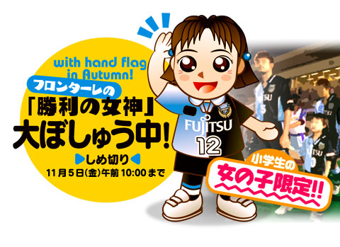 川崎フロンターレのホームゲームの際に行われる「ウィズハンド入場行進」「フラッグ掲揚」に参加する小学生の女の子を募集致します。小学校生活の思い出として是非ご応募下さい。