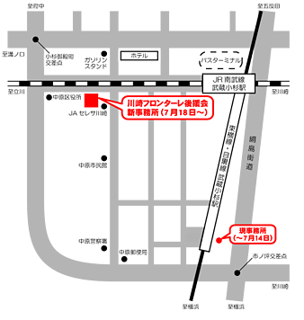 川崎フロンターレ後援会では、7月18日(火)をもちまして、下記の通り事務局を移転致しますので、お知らせ致します。