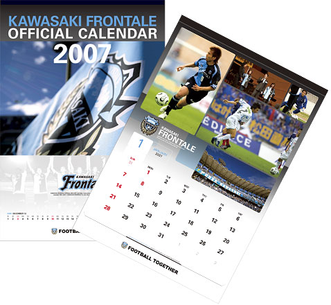 川崎フロンターレでは、2007オフィシャルカレンダーを11月18日(土)より販売致します。毎年ご好評いただいているオフィシャルカレンダーですが、2007年度版はいつもと趣向を変え、今季の全選手の写真を盛り込み、またイベント等の写真も織り込み1年を振り返るものになっております。