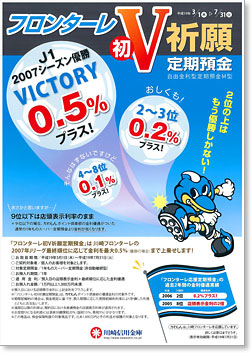 2007J1リーグ戦優勝の場合、0.5%、2〜3位の場合0.2%、4〜8位の場合0.1%預入日店頭表示金利に左記金利がプラスされます。(9位以下は店頭表示利率のままとなります。)