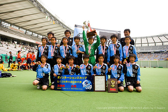 「ダノン・ネーションズカップinジャパン2009 第14回ヴェルディジュニアサッカー大会」(日本大会)に参加しております川崎フロンターレU-12が、4月5日(日)大宮アルディージャとの決勝戦を制し、昨年に引き続き「ダノン・ネーションズカップ」への進出が決定致しましたので、お知らせ致します。
