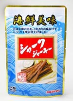 気仙沼産の高級鮫を使用した「ビーフジャーキー」ならぬ「ジョーズジャーキー」をイベントを記念して特別販売!!ジューシーでピリリと辛い、ビールのお供に、お子さんのおやつにどうぞ!!