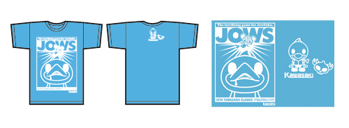 フロンターレに偏った不公平グッズとして、人気ブランド「LAUNDRY」オリジナルデザインによるJOWS Tシャツシャツを販売。襲い掛かる「城福TOKYO」を逆に食ってやろうと、ふろん太くん扮するジョーズが、ドロンパに襲いかかる人気ブランドLAUNDRYらしいキュートなデザインに仕上がったこのTシャツ。限定販売ですので、迷わずGET!!