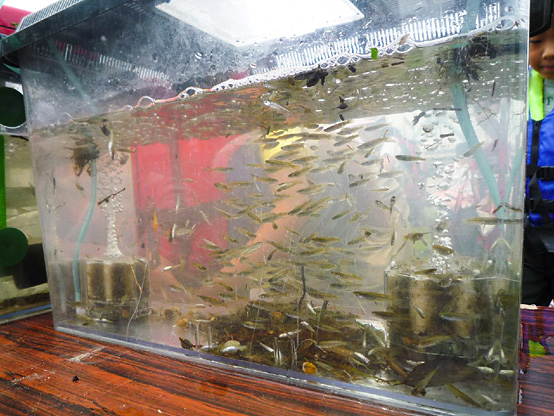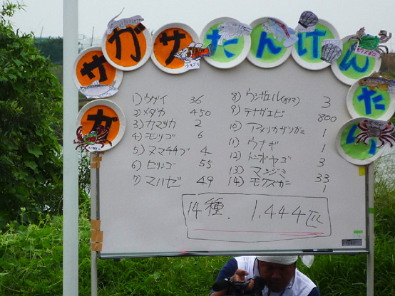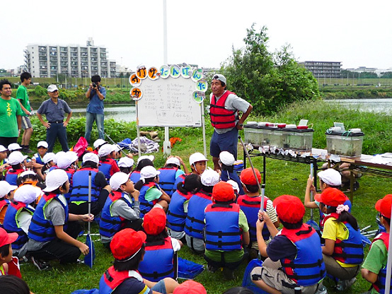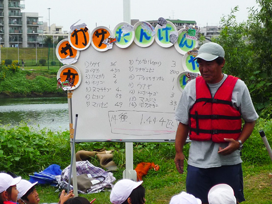 | 15:40 | ケンさん・イガちゃんのがさがさ講義 開始 捕獲した生物を水槽に入れ、中本賢さん・井川祐輔選手が説明!! 2人のかけ合いは楽しいこと間違いなし!! |
