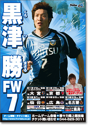 2010シーズンのスケジュールポスター第2弾(黒津勝選手バージョン)の完成を記念して、オフィシャルショップ「アズーロ・ネロ」、武蔵小杉駅前のケンタッキーフライドチキンインレット小杉店、溝ノ口駅前のケンタッキーフライドチキン溝ノ口店の3店舗で、「スケジュールポスター」プレゼントキャンペーン第2弾を実施致しますので、お知らせ致します。ぜひこのチャンスを逃さず、ポスターをGETしてください!