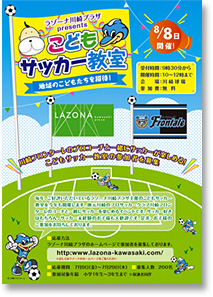川崎フロンターレでは、ラゾーナ川崎プラザの協賛により小学1年~3年生対象のこどもサッカー教室を8月8日(日)に開催する事となりましたのでお知らせ致します。