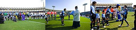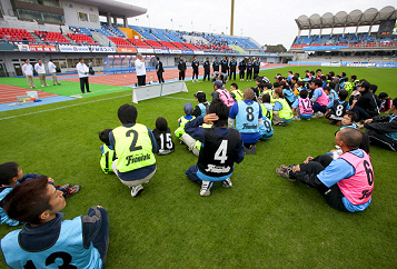 等々力競技場ピッチ内で50組100名参加の親子サッカー教室を開催します。(※参加者募集は終了しています。) |
