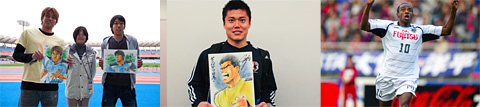 出品は川崎フロンターレの選手だけではなく、日本代表GK川島永嗣選手や、現在ドイツにて活躍中のFW鄭大世選手などフロンターレOB選手もお宝アイテムをおしげもなくこのチャリティーに出展しています。その他、川崎出身の漫画家・塀内夏子先生書き下ろしのケンゴ、イナ、エイジのイラストなど盛り沢山。落札希望者は、出展してあるグッズの落札希望額を入札BOXに入れていただきます。落札金額は、すべて「Mind-1ニッポン」義援金口座を通じて、被災者の援助・復興の資金などに使われます。
