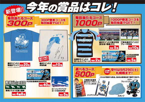 10月20日(土)G大阪戦以降のリーグ戦ホームゲーム時の「来場ポイントサービス」の抽選会は、「300P懸賞コース」「1000P懸賞コース」のみとなります。