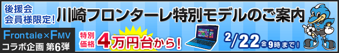 川崎フロンターレでは、オフィシャルスポンサーの富士通株式会社様のご協力により、川崎フロンターレ後援会の皆さんを対象に、富士通パソコン「FMV」が特別価格で購入できる特別サイトをオープン!