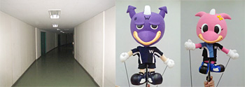 ①等々力競技場の秘密の地下通路を探検! ワルンタ・フーランと各ダンジョンの脳トレ問題を解きながら進もう! ②通路を抜けると地下室に到着! |