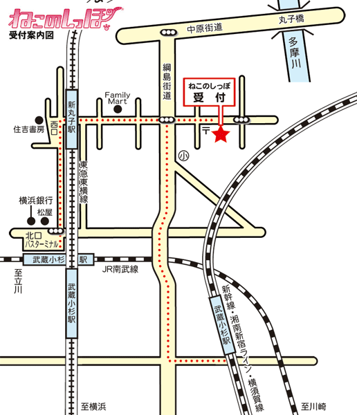 ◇ねこのしっぽ 受付窓口【新丸子駅東口から徒歩5分 12:00~20:00 ※日・祝定休】