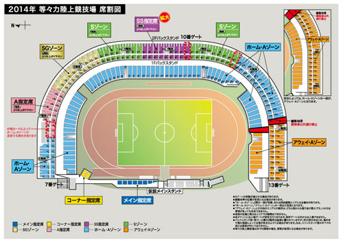 ※「ホーム・Aゾーン」「アウェイ・Aゾーン」の一部は立見席となります。