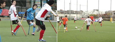 主に上肢、下肢の切断障害を持った選手がプレーするサッカー。