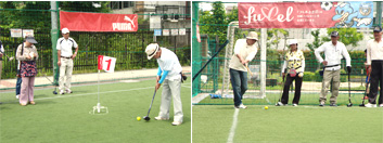 1982年に鳥取県で創案されたスポーツで、専用のクラブとボールを使用してプレーするゴルフ。グラウンド・ゴルフは高度な技術が必要なく、子どもから大人まで誰もが楽しめる。また、ボールが空中を飛ばないので安全にプレーできる。愛好者は全国で300万人。