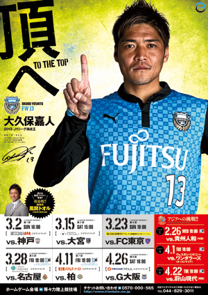 2014シーズンのスケジュールポスター第1弾(大久保嘉人選手バージョン)の完成を記念して、2月15(土)より「スケジュールポスタープレゼントキャンペーン」を実施しますので、お知らせいたします。
