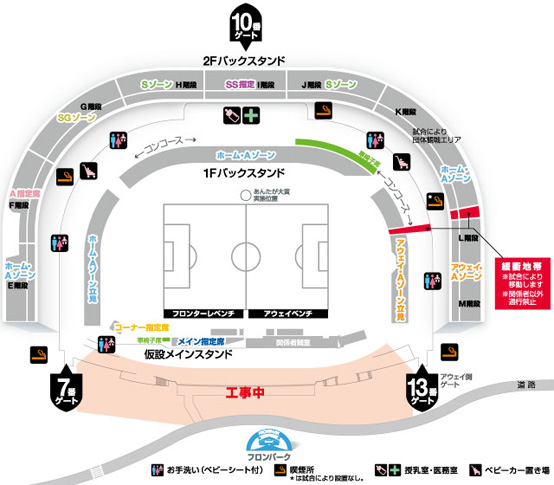 工事完了までの間は、サポーターの皆さんにはご不便をおかけしますが、より観戦しやすくなる等々力を目指して、ご協力をお願いいたします。