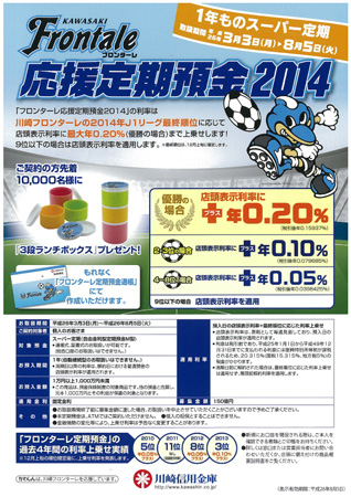 川崎信用金庫フロンターレ応援定期預金2014のお知らせ