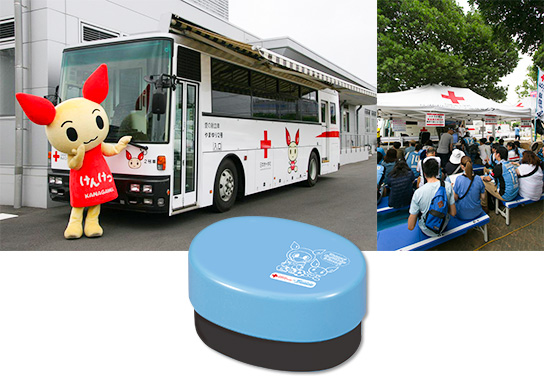ご協力いただいた方は、待機時間は「血の気が増える!?かわさき献血ルームin等々力」でお楽しみいただき、記念として赤十字とフロンターレのランチボックスをお渡しします!