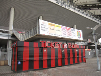 ●ソウル(Seoul)の「金浦(キンポ/Gimpo)国際空港」からKORAIL空港鉄道で「ソウル駅」行きに乗車し「デジタルメディアシティ(Digital Media City)駅」で下車(約9分)、地下鉄6号線「合井(Hapjeong)駅」・「烽火山(Bonghwasan)駅」方面行きに乗り換えて「ワールドカップ競技場(World Cup Stadium)駅」にて下車(約3分)、出口「1」から地上(バックスタンド側)へ。計1,250Won。