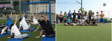フロンタウンさぎぬまでは、8月の毎週土曜日の朝、男性向けのヨガ教室を開催しておりましたが、ご好評により9月、10月も延長し開催させていただくこととなりました。深い呼吸をしながらヨガポーズをとることで体の柔軟性を高め、スポーツ中のケガを予防することができます。青空のした芝生の上で行うことで日常から解放され、心もリフレッシュできること間違いなし!ワンコインで参加できるお得な企画です。是非皆さまご参加ください。