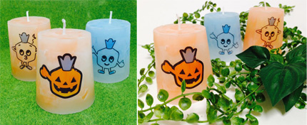 ハロウィンにちなんだオレンジ色や、フロンターレカラーの水色のオリジナルキャンドル作りが体験できます。選べる絵柄は全部で5種類。カブレラの絵柄が入ったかわいいオリジナルキャンドルを作れますよ! |