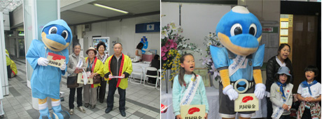 駅前や区民祭でふろん太が募金活動をお手伝いします!