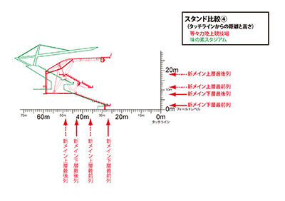 陸上トラックがあり、規模的に近いスタジアムのメインスタンドとの比較です。