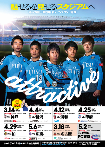 2015シーズンのスケジュールポスター第1弾(中村憲剛選手、大久保嘉人選手、小林悠選手、谷口彰吾選手、大島僚太選手バージョン)の完成を記念して、2月21(土)より「スケジュールポスタープレゼントキャンペーン」を実施しますので、お知らせいたします。