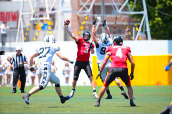 3チームによる変則ゲーム。初めてアメフト観戦する人のために、わかりやすいルール解説を館内放送でライブ中継!