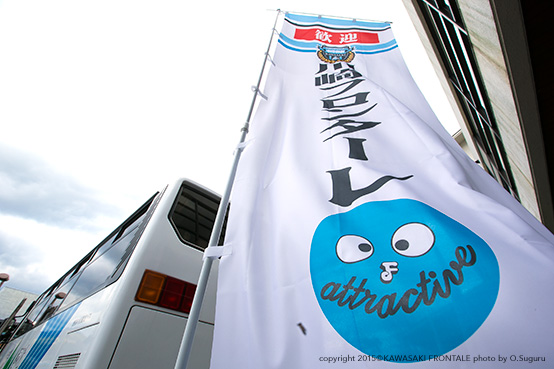 川崎フロンターレでは、2015シーズンに向けてのトレーニングキャンプを実施しておりましたが、宿泊先である宮崎県綾町の「酒泉の杜」様のご厚意で、施設内に設置されていた2015シーズンのキャッチフレーズが入った「のぼり旗」に、キャンプ参加の全選手のサインを、また、関連施設である「綾自然蔵見学館」エントラスホールに掲示していた「パネル」にサインを入れてプレゼントすることとなりましたのでお知らせいたします。