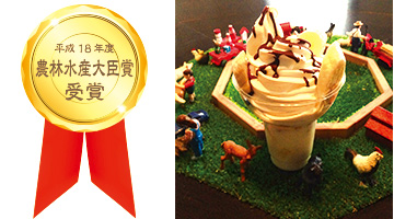 「乳しぼり」コーナーでも協力していただいている相澤牧場が生産している農林水産大臣賞受賞のおいしいソフトクリームをドールのフルーツと出会わせてパフェとして販売!先着150名様の小学生以下のお子様に「乳しぼり券」を進呈します。