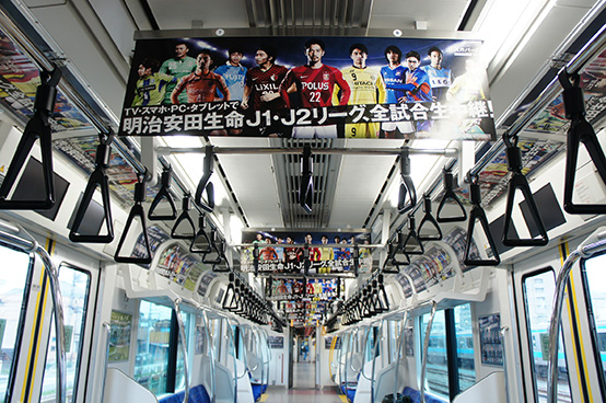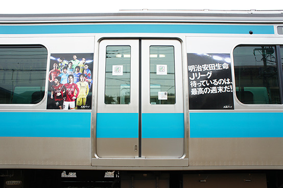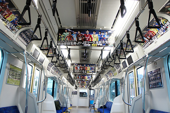 スカパー!は、現在、4月1日(水)までの期間で、JR京浜東北線と総武線の電車内外の広告を埋めつくすトレインジャックを実施中。明治安田生命Jリーグの11クラブ(鹿島、浦和、大宮、千葉、柏、FC東京、東京V、川崎F、横浜FM、横浜FC、湘南)にジャックされた車両と、関東エリアに拠点を置くプロ野球の球団にジャックされた車両で編成された電車が走行中です。